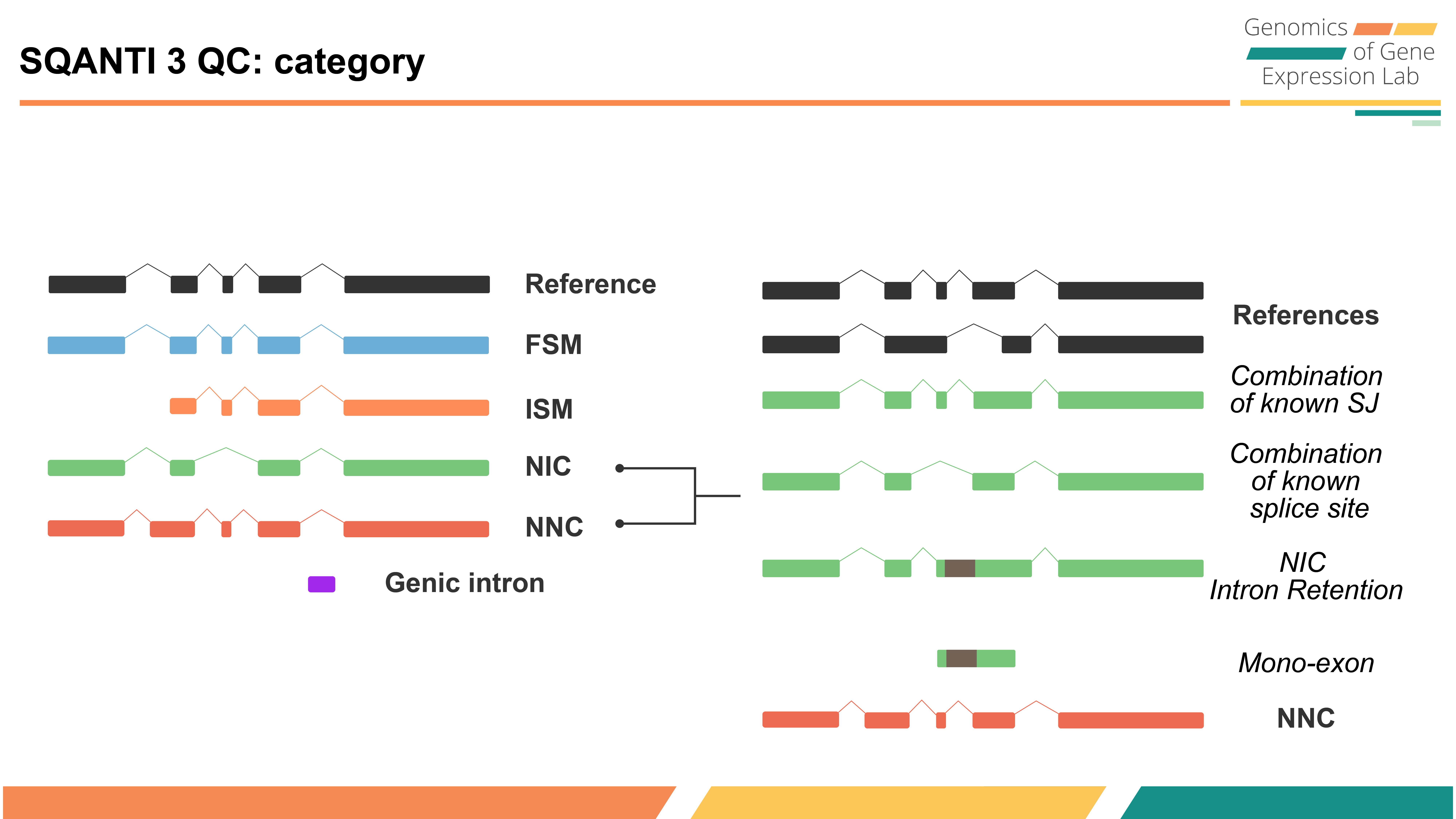 SQANTI3 sorts each isoform by comparing it to a known reference transcript. Here's how it categorizes them: